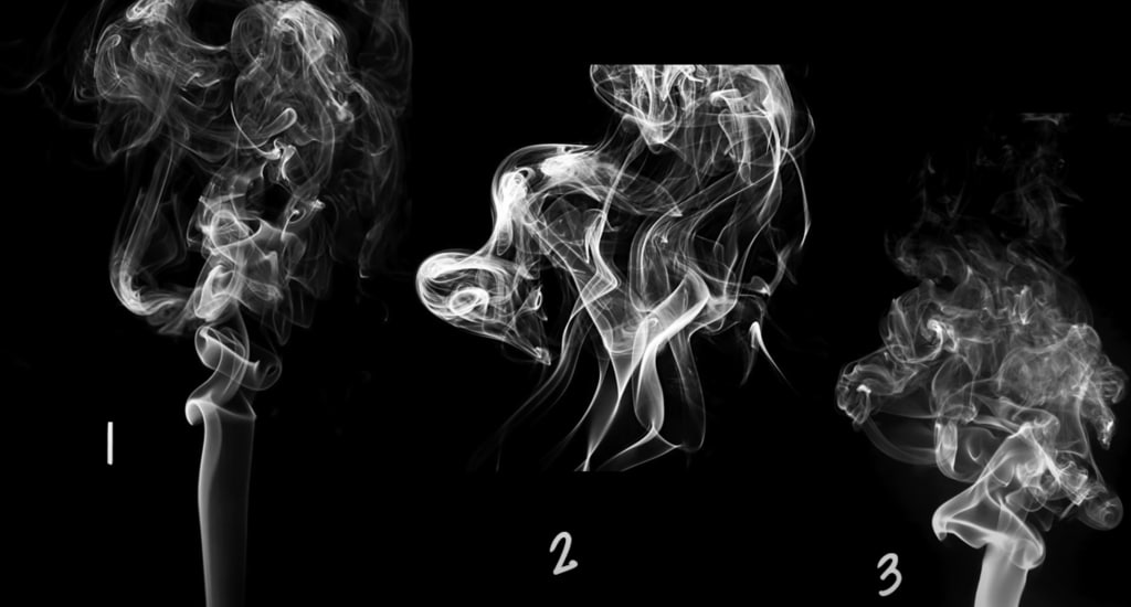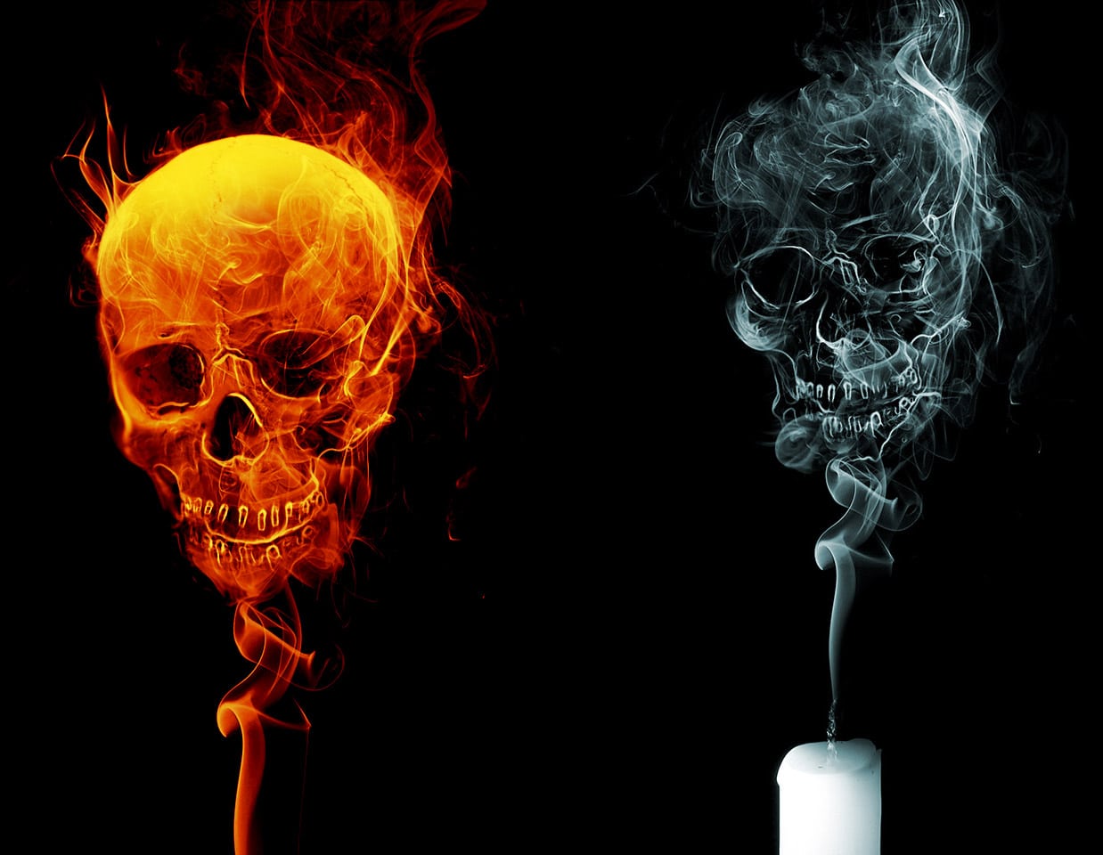 Du behöver en bild på ett objekt. I det här fallet en dödskalle. Och ett gäng bilder på rök. Just denna med tre olika.