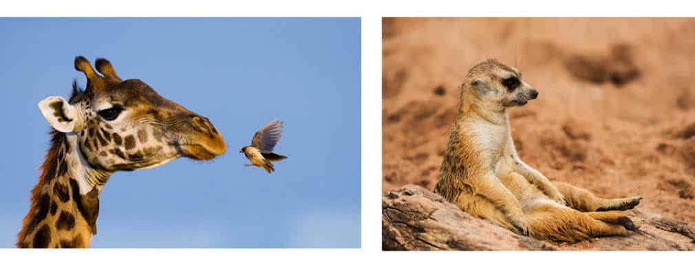 Den här giraffsurikaten är ett snabbt Photoshopverk. Du frilägger det objekt du vill montera i den andra bilden. I exemplet är giraffhuvudet monterat på surikatbilden. Med en stor och mjuk pensel målar du över övergången, i det här fallet giraffens hals.