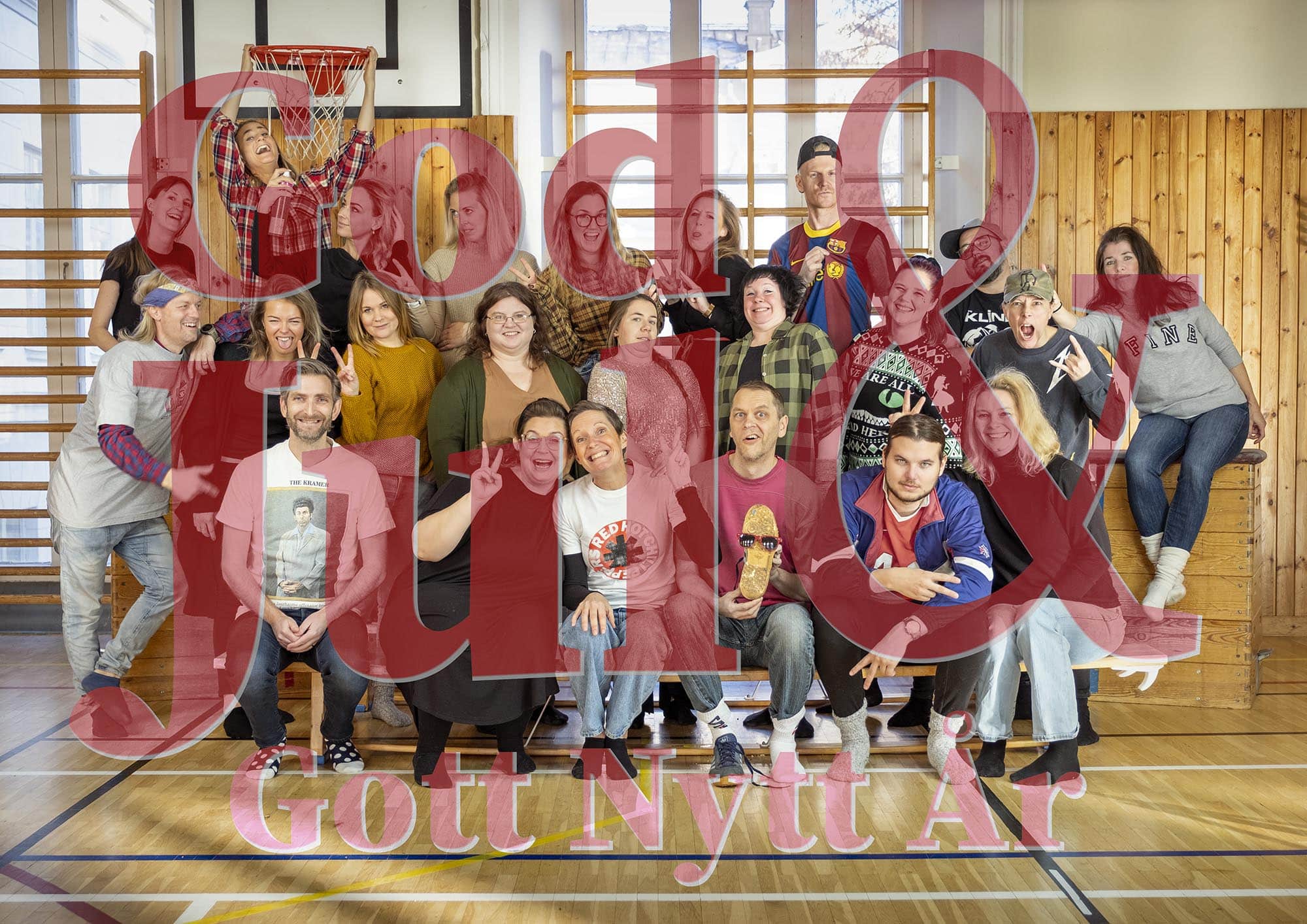 Ursprungsidén var att skapa ett klassiskt klassfoto nu när vi faktiskt blivit så många som 26st i besättningen på Moderskeppet. En gruppbild i klassfoto-stil i en miljö som relaterar till den där gamla skolkatalogen i 9an du vet. Så här såg vi det framför oss.