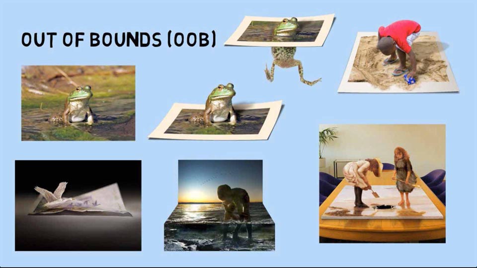 Out of Bounds är namnet på en 3D-liknande effekt där motivet ser ut att bryta sig loss ifrån bilden. Det är kreativt, kul och lärorikt.