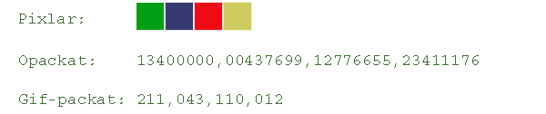 I vanliga fall representeras varje pixel av ett nummer mellan 00.000.001-16.700.000. Alltså 8 tecken långt. I GIF är paletten 256 färger eller färre. Då är varje pixel bara 3 tecken långt. Filutrymmet varje pixel kräver är alltså avsevärt mindre när det är GIF-packat.