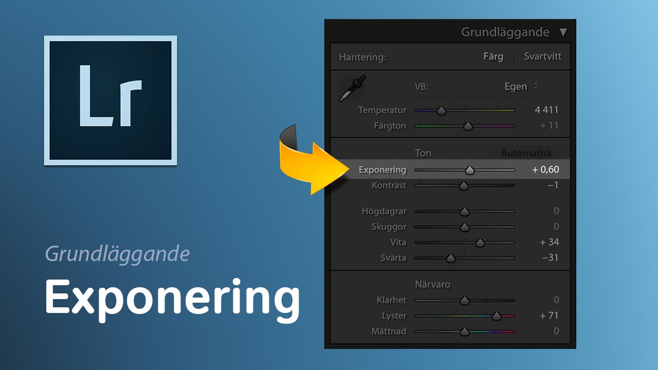 Exponering är ett reglage som är enkelt att förstå sig på. Drar du reglaget åt höger får du en ljusare bild, drar du åt vänster får du en mörkare bild.