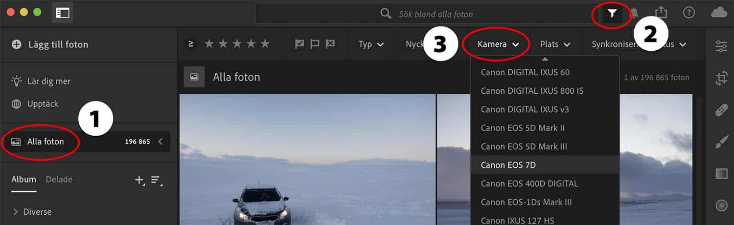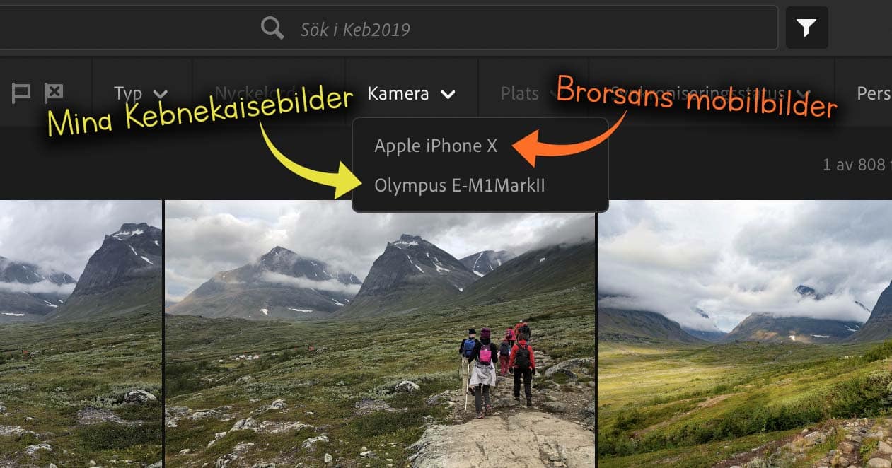 Kamerafiltreringen är även bra om ni är flera som fotat, exempelvis under en gemensam utflykt. Filtrera bara på personens kamera så får du snabbt fram de bilderna.