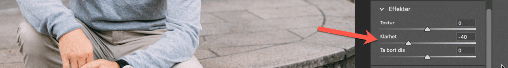 Bonustips: Har du hög kontrast i bilden kan du även höja Skuggor till ett värde av +10 och sänka Högdagrar till ett värde av -10. Det ger dig ett jämnare ljus i huden.