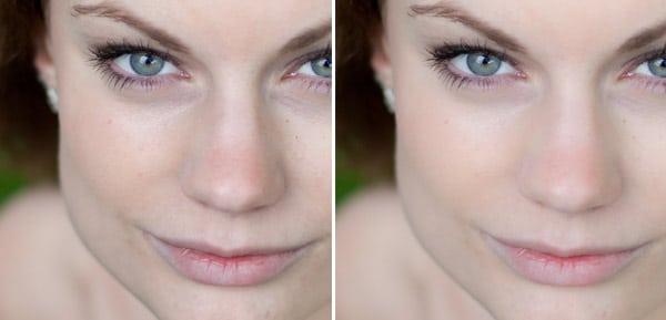 Måla nu i bilden i hudpartier för att mjuka upp och jämna ut. Finjustera inställningarna i din maskering i efterhand om effekten blir för kraftig eller för svag.
