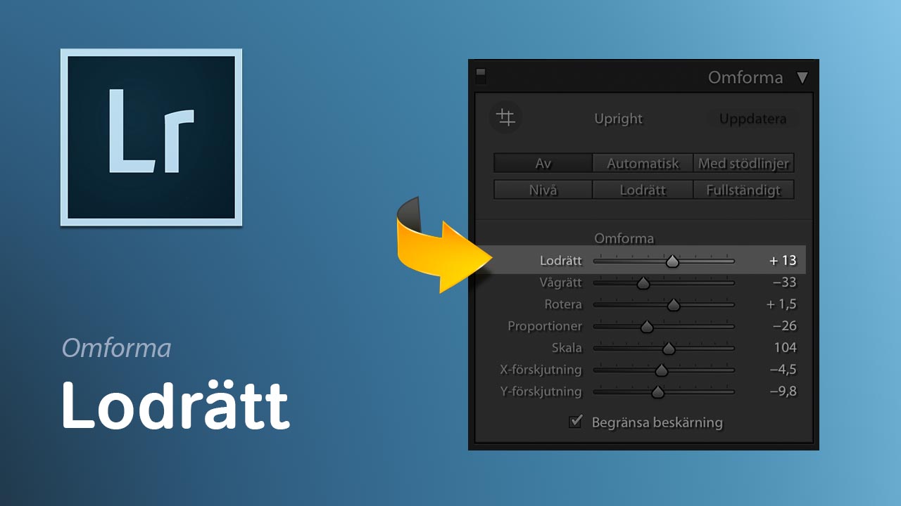 Ett typiskt fall då du vill använda Lodrätt är när du har vinklat kameran uppåt. Exempelvis upp mot en stor byggnad vilket har fått linjer att luta in i bilden.