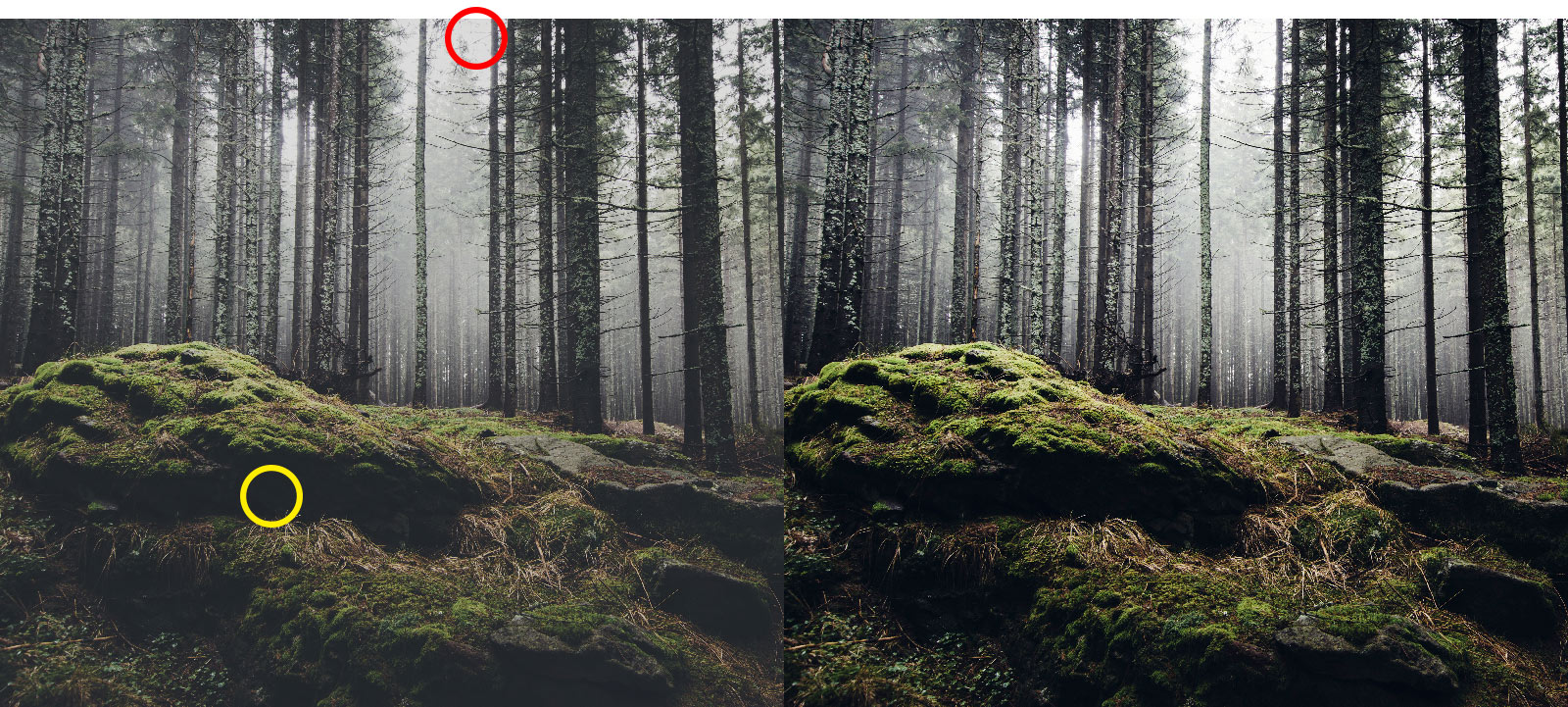 Ett tydligt exempel där jag förändrar ljuset i förgrunden, som nästan uteslutande är i området skuggor.