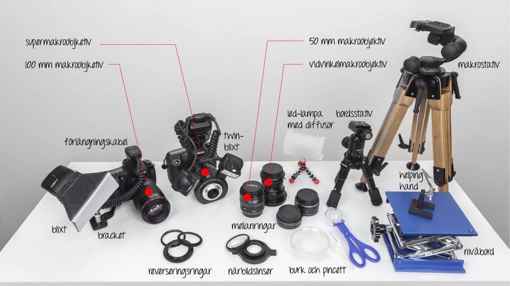 Länkar till inköpsställen för Tonys tillbehör hittar du via den här länken. Om du är intresserad av makrostacking finns ytterligare prylar och inköpsställen här.